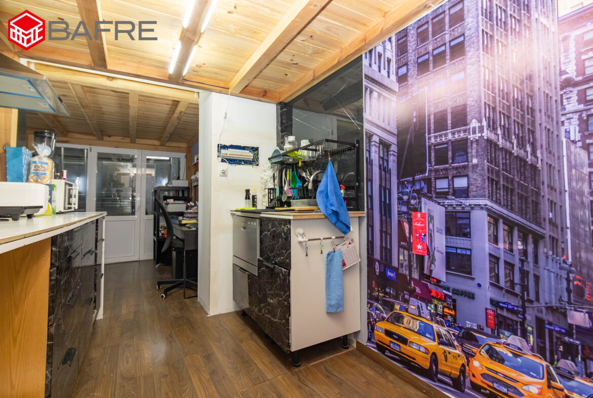 Planta superior: Espacio diáfano con techos altos, que aporta una gran sensación de amplitud. Cuenta con cocina equipada, una zona de trabajo ideal para estudio o teletrabajo, y un baño con plato de ducha. Además, dispone de una estructura de madera que permite aprovechar el espacio en altura para almacenamiento